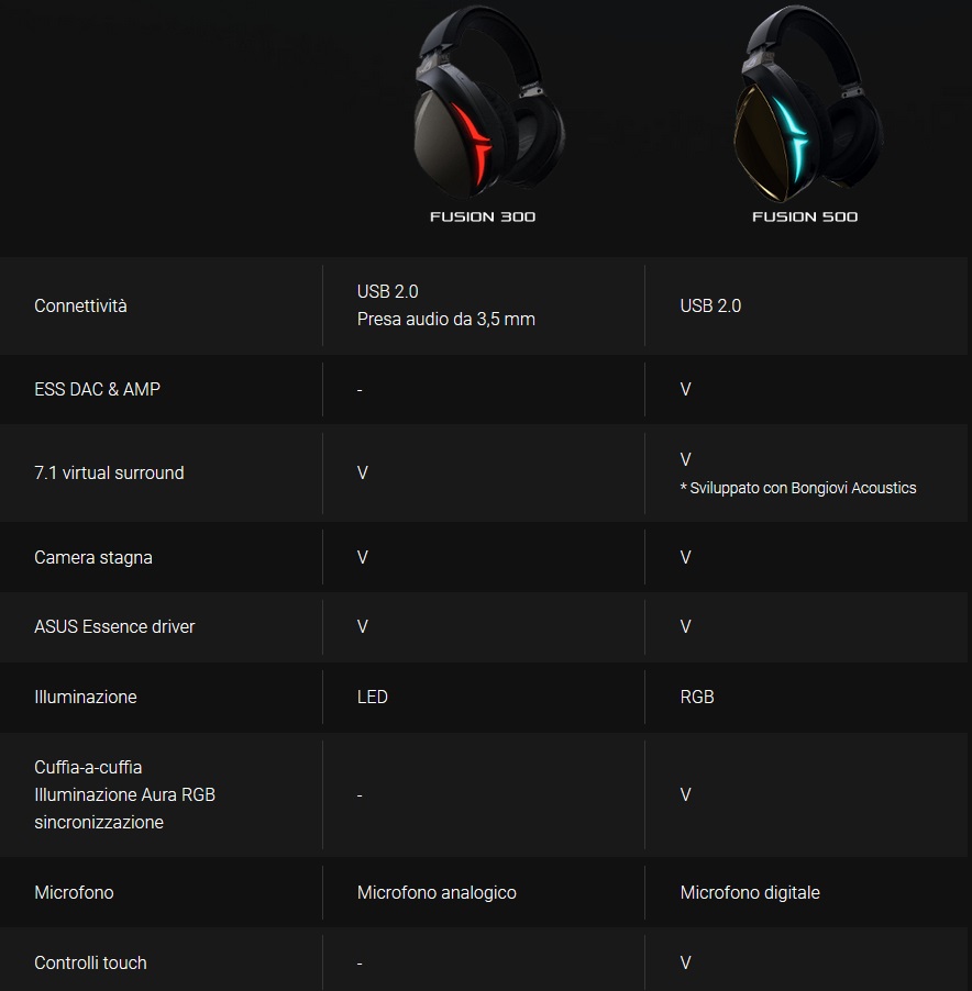 Procediamo ad elencare brevemente le caratteristiche delle cuffie ASUS ROG Strix Fusion 500: