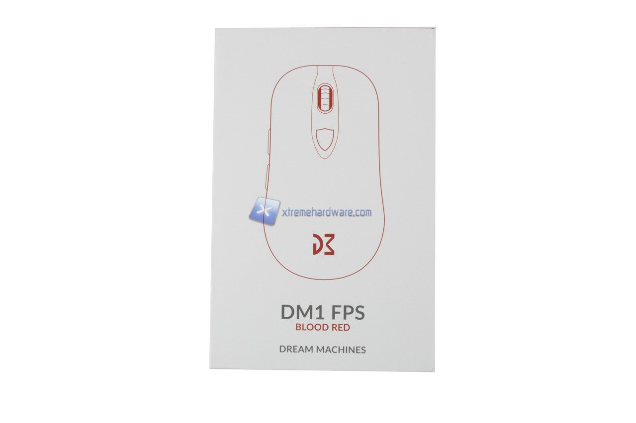 Il Dream Machines DM1 FPS giunge nella classica confezione di cartone di forma rettangolare. Interamente di colore bianco con qualche rilievo di colore rosso a richiamare in parte anche la colorazione vera e propria del prodotto. Frontalmente troviamo un’immagina/disegno del prodotto e altri riferimenti al modello e all’azienda. Posteriormente un ulteriore immagine/disegno questa volta della parte inferiore del prodotto, il sensore impiegato e i DPI massimi.