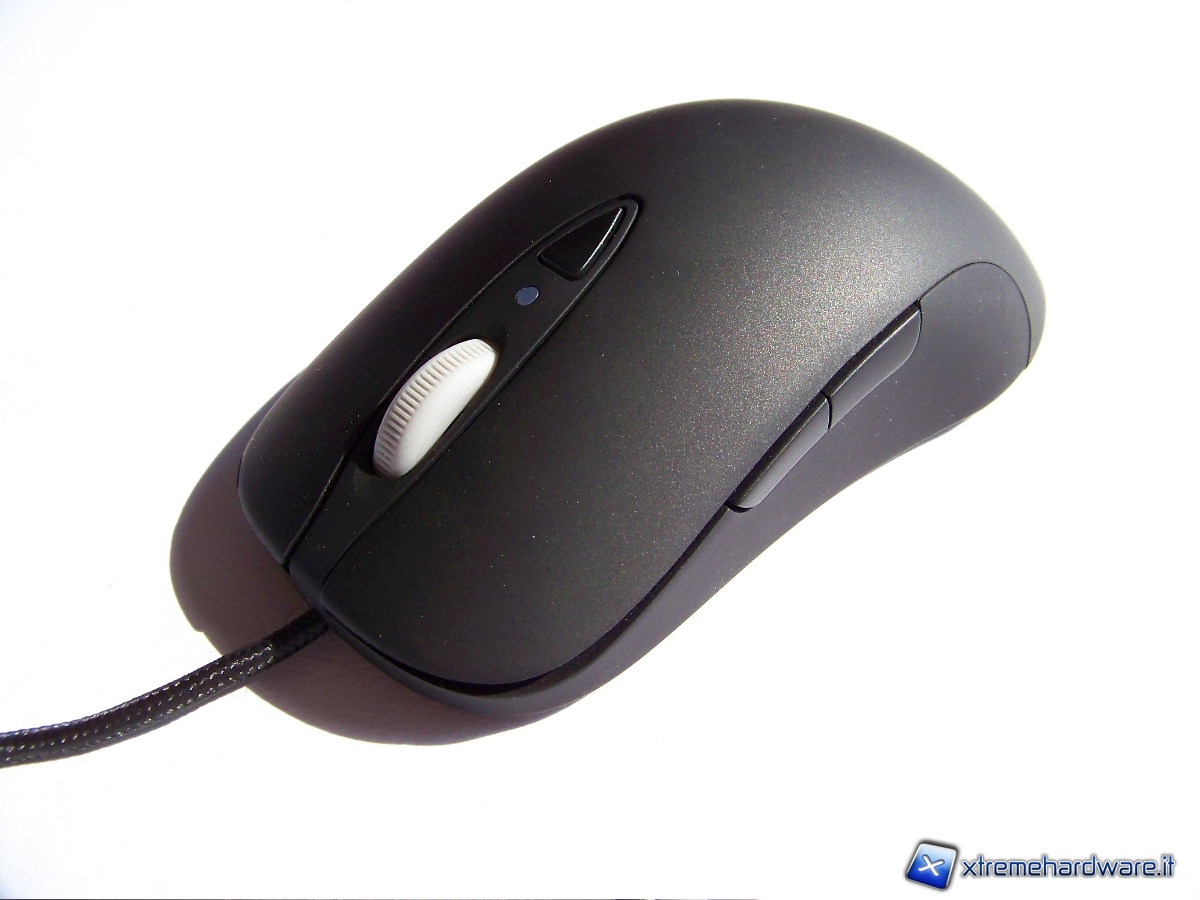 La parte superiore del mouse è caratterizzata dai due tasti principali, dallo scroll e dal tasto CPI che permette di aumentare in maniera veloce la sensibilità del mouse, portandola fino a 5001CPI; un led indica quando questa funzione è attivata.