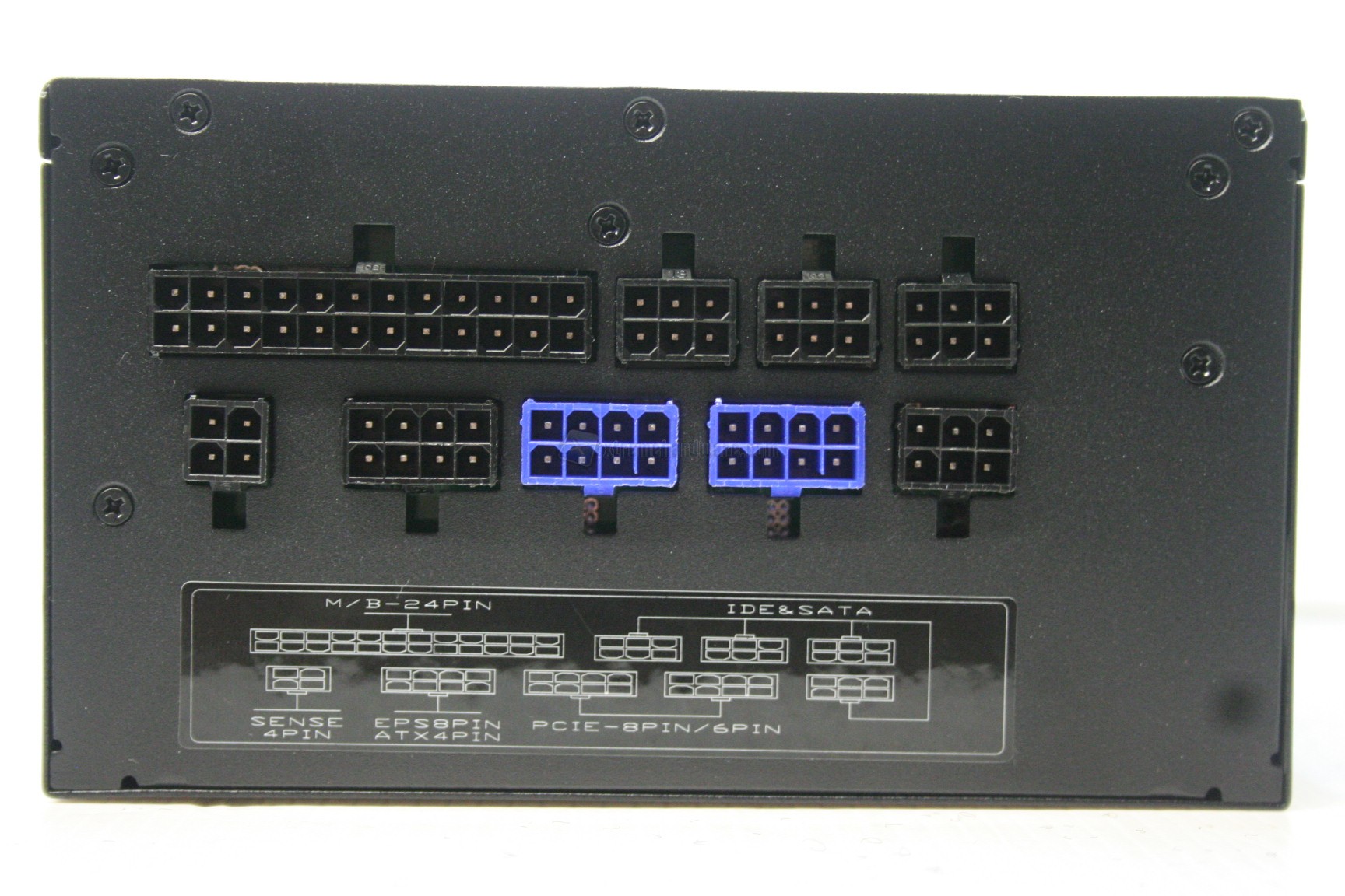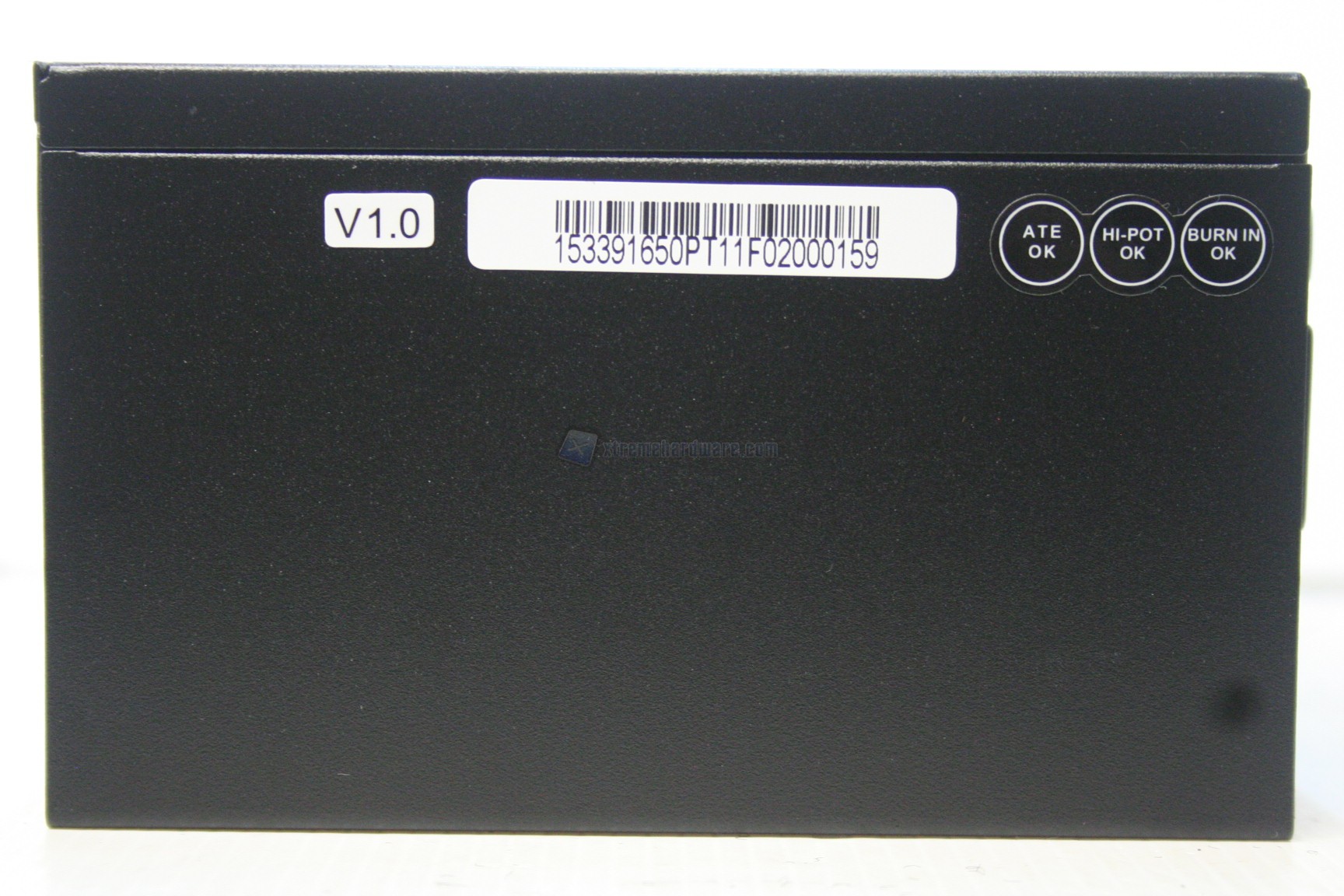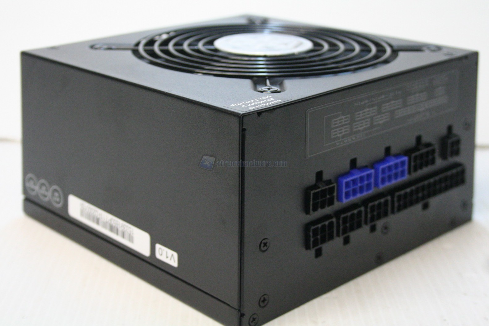Lateralmente, in alto, c’è uno sticker che segnala la perdita della garanzia della casa produttrice qualora dovesse essere rimosso o forato, per permettere lo smontaggio della scocca, cosa presente nella quasi totalità degli alimentatori attualmente in commercio