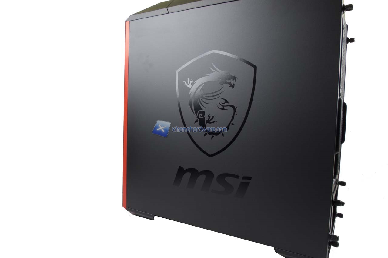 Partiamo dal pannello di destra che non presenta alcuna paratia finestrata ma bensì un generoso logo MSI che copre la maggior parte della superficie.