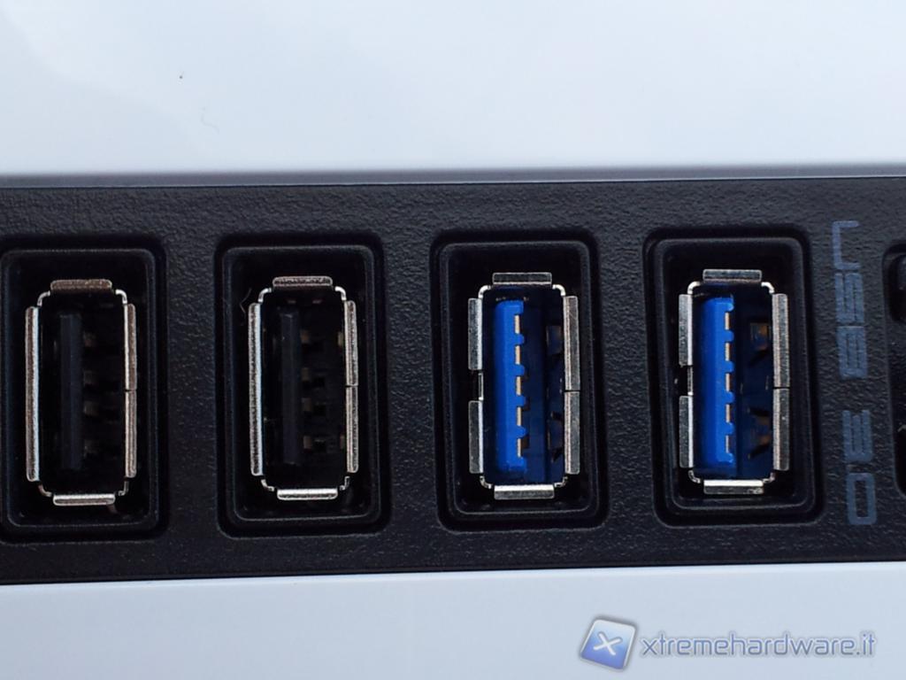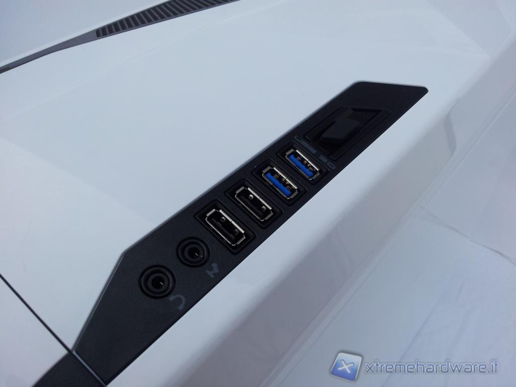Per quanto riguarda le connessioni il case è già predisposto per le USB 3.0 (per il modello precedente vi è stato un aggiornamento successivo).Troviamo infatti due USB2.0e due USB 3.0 oltre ai connettori per microfono e cuffie.