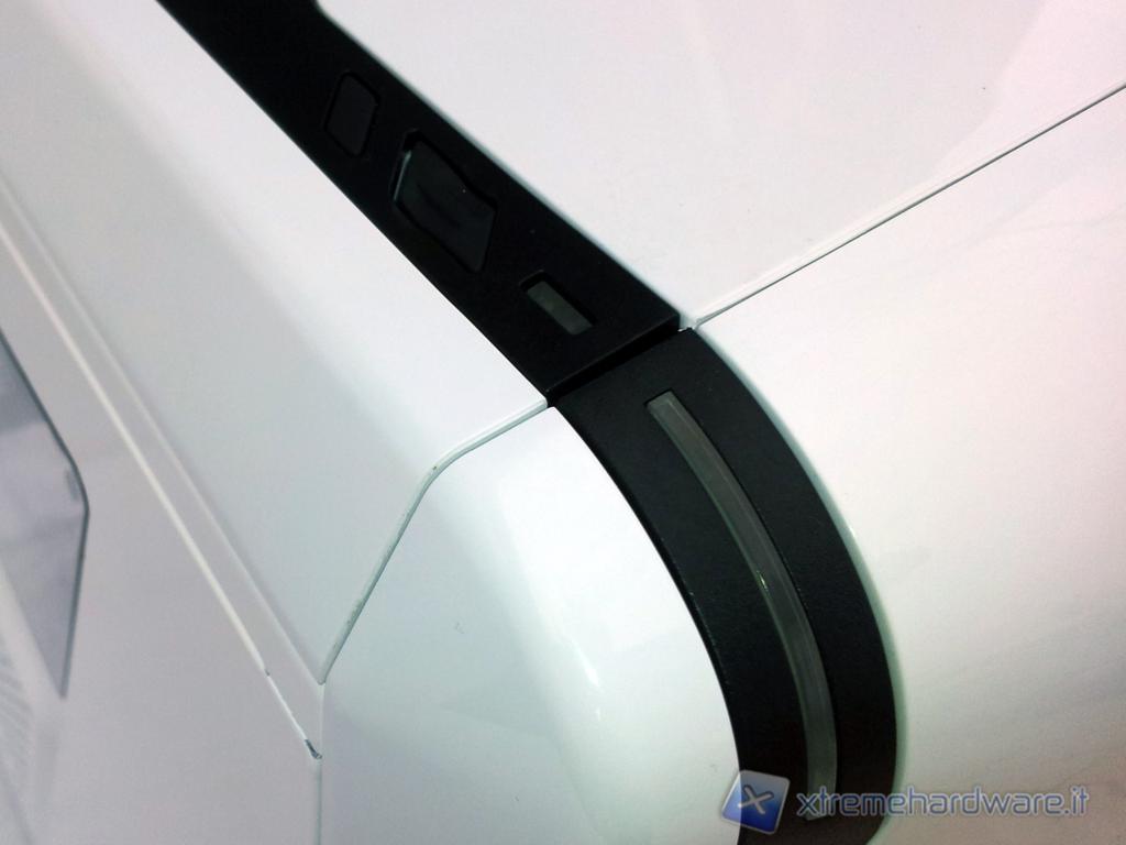 La parte superiore è probabilmente quella che ha subito i cambiamenti più sostanziosi rispetto alla versione tower, mentre la disposizione e la forma dei tasti di accensione e di reset così come i led di stato sono rimasti invariati.