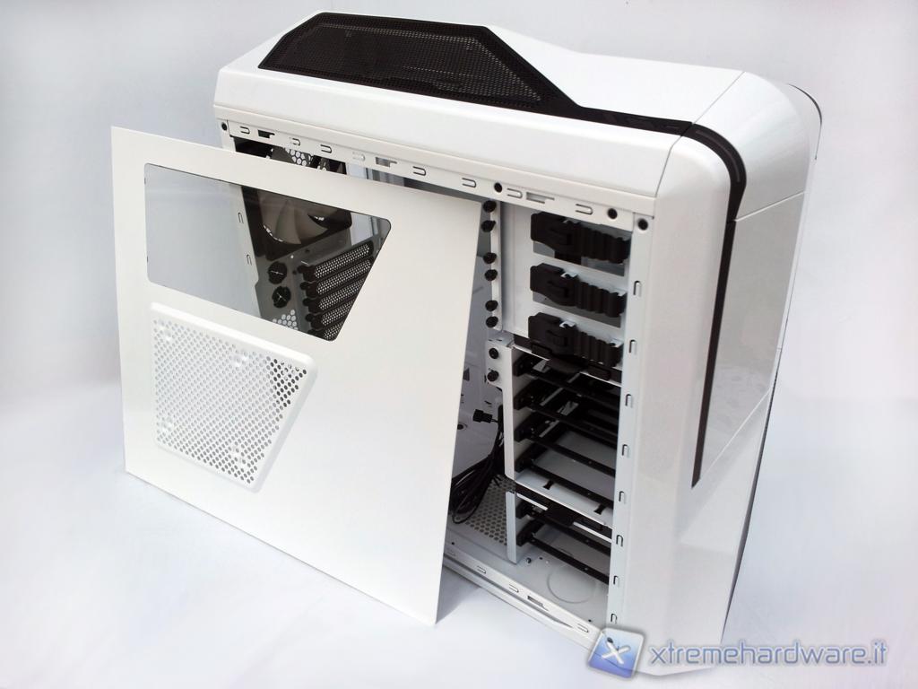 La parte superiore della paratia sinistra presenta una finestra in plexy dalla forma trapezoidale che permette la visione della zona socket, delle RAM e di una piccola parte del cestello per il montaggio delle periferiche da 5,25", solitamente lasciata coperta dalla maggior parte delle paratie finestrate.