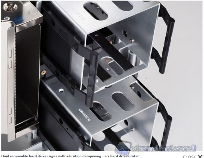 • Ventilazione e dissipazione interna molto avanzata ; oltre al dotto per le schede video è possibile installare una ventola per il raffreddamento degli hard disk e ben due ventole da 120mm nel comparto superiore, possibilmente in immissione, creando così il fenomeno della pressione positiva.