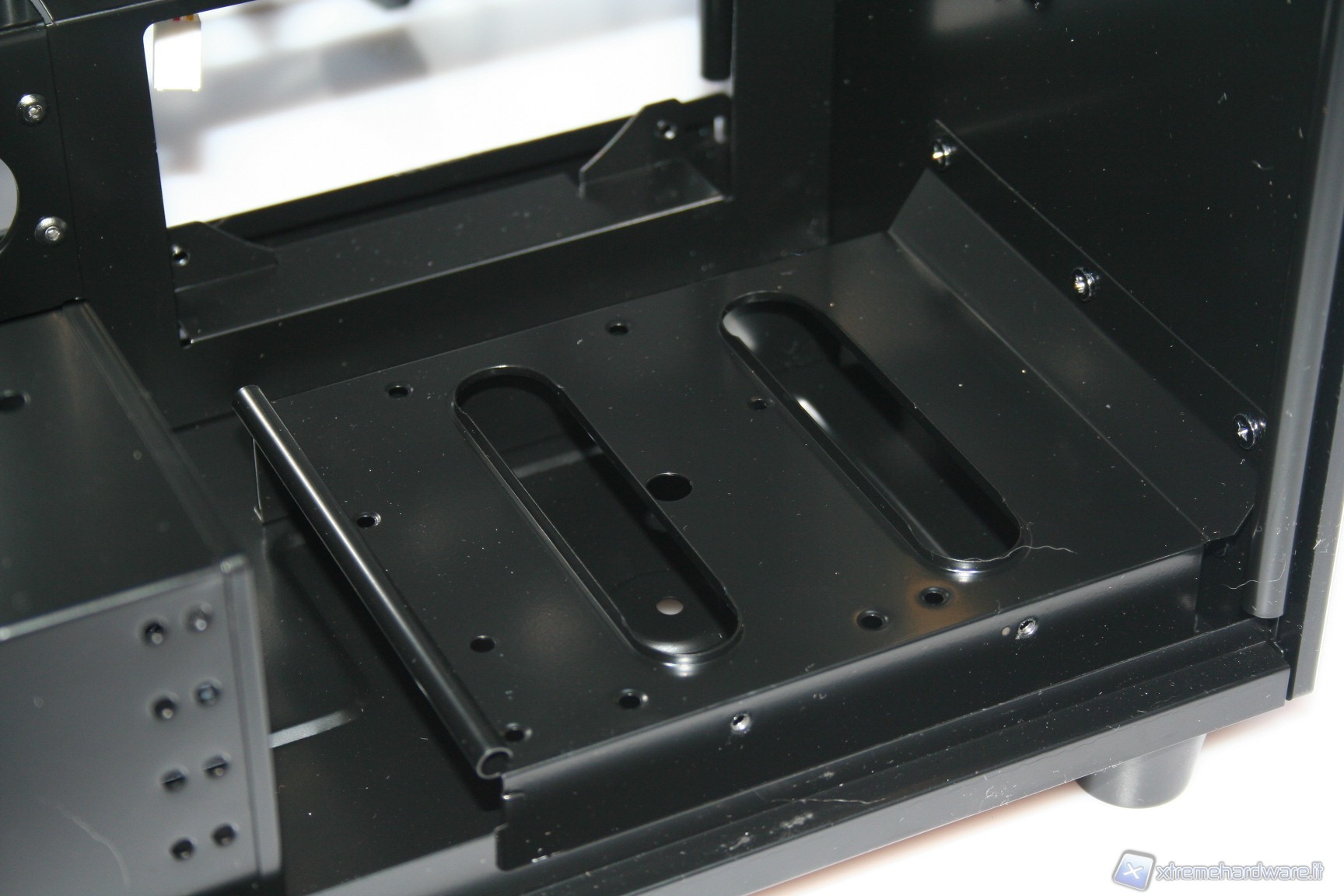 Il piatto della scheda madre, interamente in acciaio, non è removibile. E’ qualitativamente molto buono, decisamente stabile ed inoltre presenta una particolarità : fin da subito si nota la presenza dei fori di cablaggio che però non presentano dei profili gommati ; perché non è stata adottata una soluzione del genere ? Perché Silverstone ha finemente rifinito i bordi di queste aperture, e quindi come vedete non si rischierà minimamente di rovinare i cavi all’atto del montaggio. Per farvi capire abbiamo fatto pressione sull’apertura, che appunto è arrotondata !