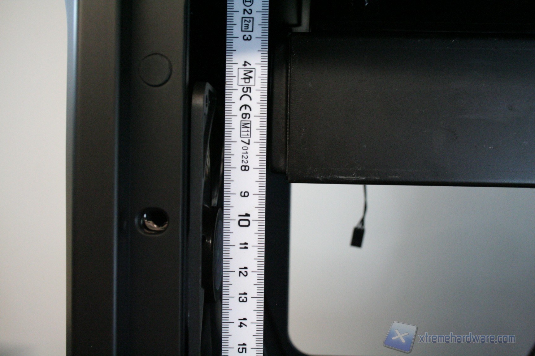 Abbiamo preso le misure in quanto potrebbe creare seri problemi per l’installazione della scheda madre, collidere con componenti elevate oppure compromettere l’installazione del connettore di alimentazione ausiliario da 4+4 PIN della CPU. Facciamo presente che questo radiatore però non è installabile nella parte bassa, dove invece è garantita la compatibilità solo con modelli da 240mm. Vi mostriamo le fotografie nel dettaglio.