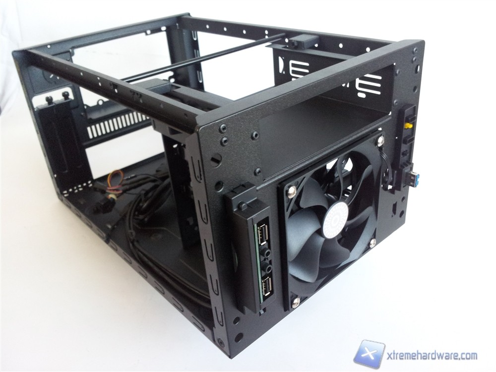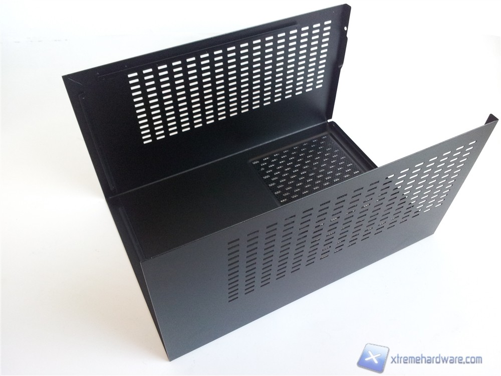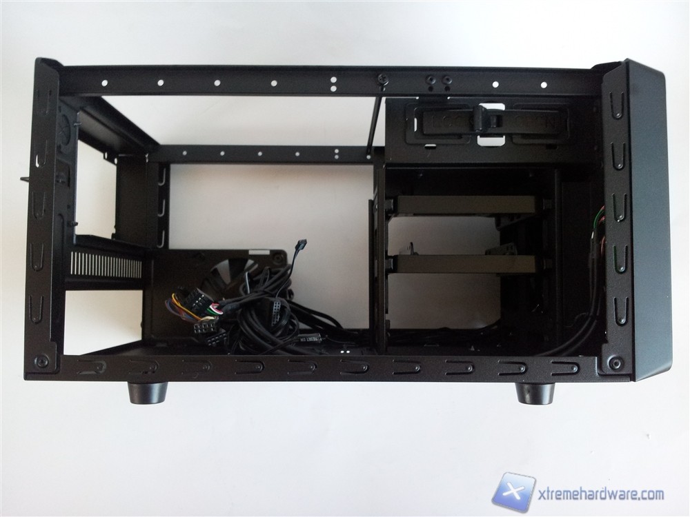 La piastra della scheda madre presenta quattro fori per il montaggio di schede madri in formato mini-ITX, sopra di essa andrà montato l'alimentatore che, come detto in precedenza, dovrà essere in standard ATX.