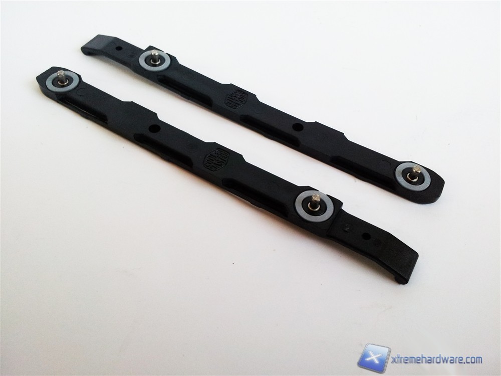 Sarà possibile installare una ventola da 120mm tra la mainboard e il cestello degli hard disk: Cooler Master mette a disposizione delle particolari viti in plastica dura che permetteranno di attaccare la ventola al cestello senza l'utilizzo di un cacciavite.