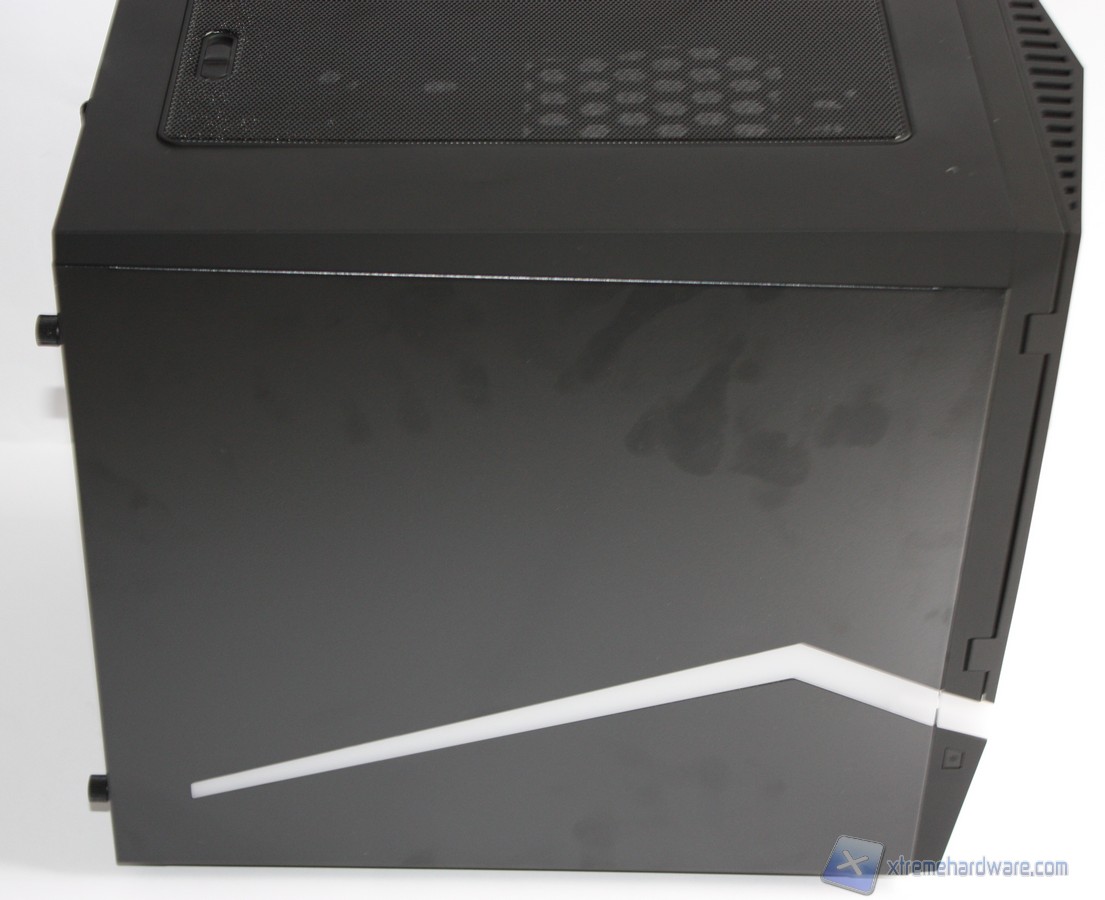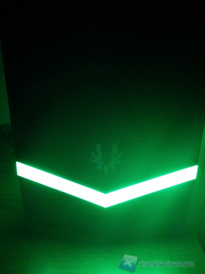 La caratteristica principale del BitFenix Colossus M-ATX è senza dubbio la striscia LED che percorre il frontale ed i lati dello chassis. Tale LED è alimentato semplicemente da un connettore SATA ed ha la possibilità di essere regolato su tre colorazione (Rosso, Blu e Verde) tramite un comodo tasto posto a lato dello chassis. Vi riportiamo dunque le immagini al buio con il relativo effetto.