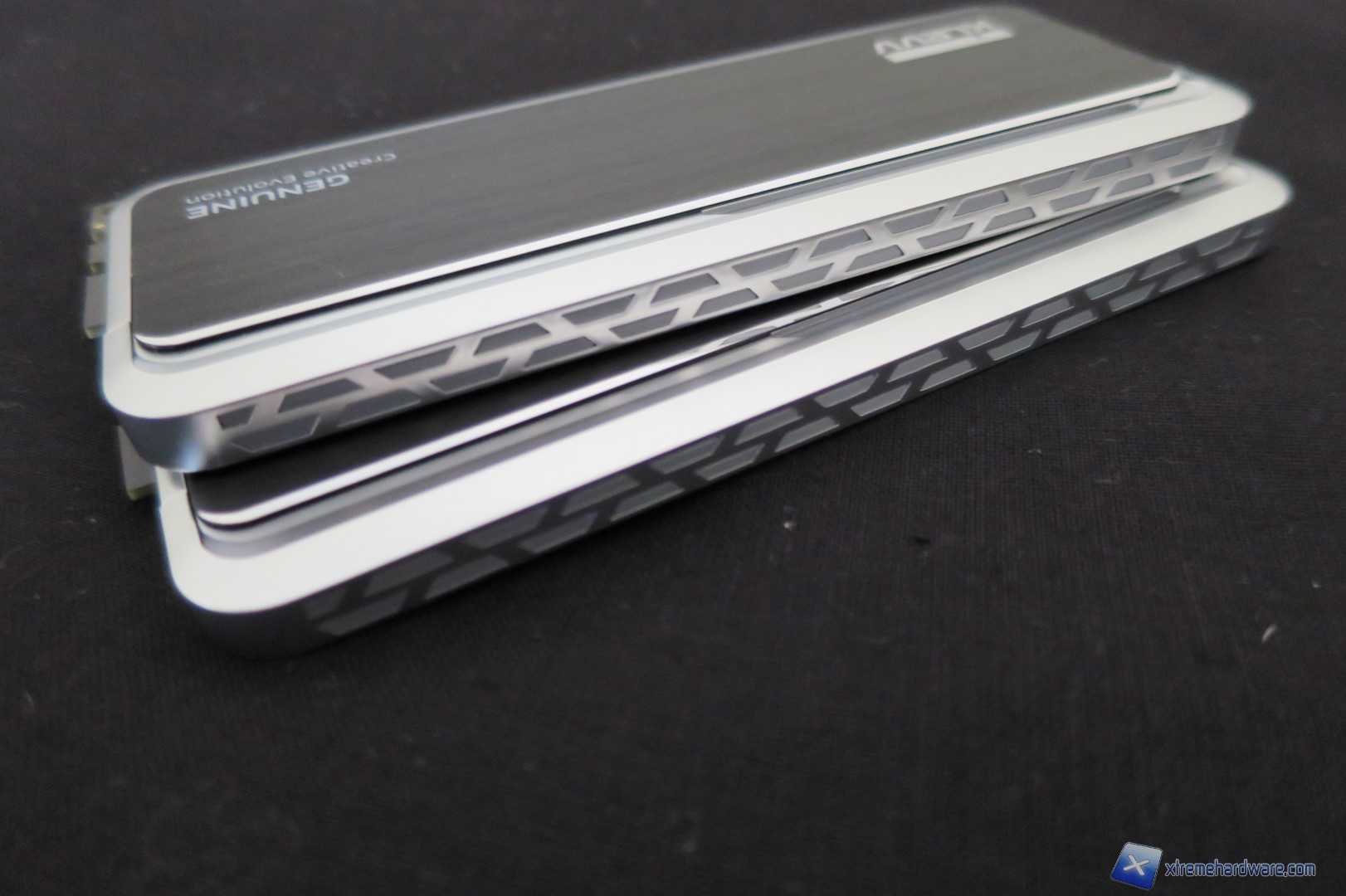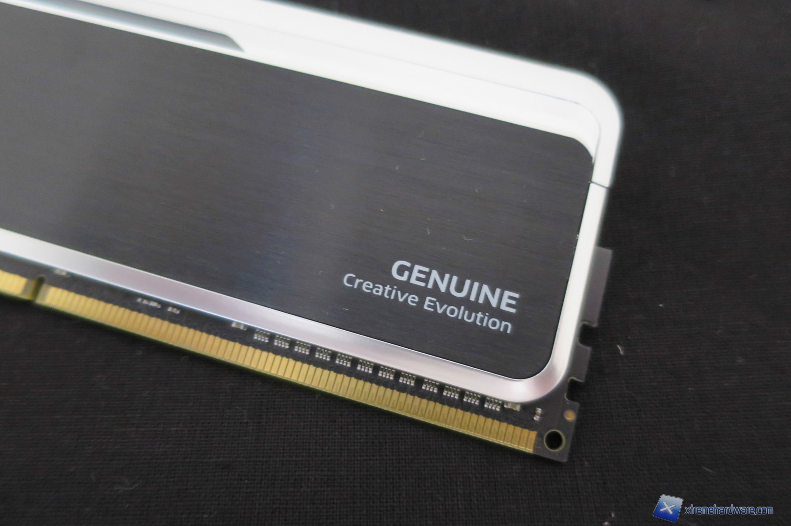 Passando ad analizzare più nel dettaglio i moduli, troviamo il logo KLEVV in rilievo con una superficie quasi a specchio nella parte sinistra mentre spostandoci in quella di destra troviamo la scritta della serie Genuine con il relativo motto “Creative Evolution”.