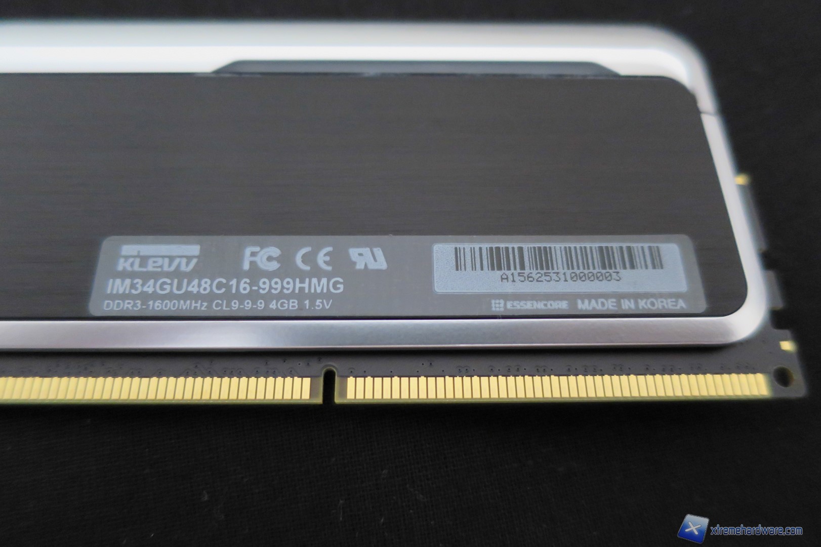 Nel retro dei moduli invece troviamo un adesivo riportante il modello esatto dei moduli con relativi timings, frequenza, capacità e voltaggio. In questo caso avremo la sigla IM34GU48C16-999HMG, frequenza di 1600MHz, timings di CL9-9-9, capacità del singolo modulo di 4GB e voltaggio di 1,5V.