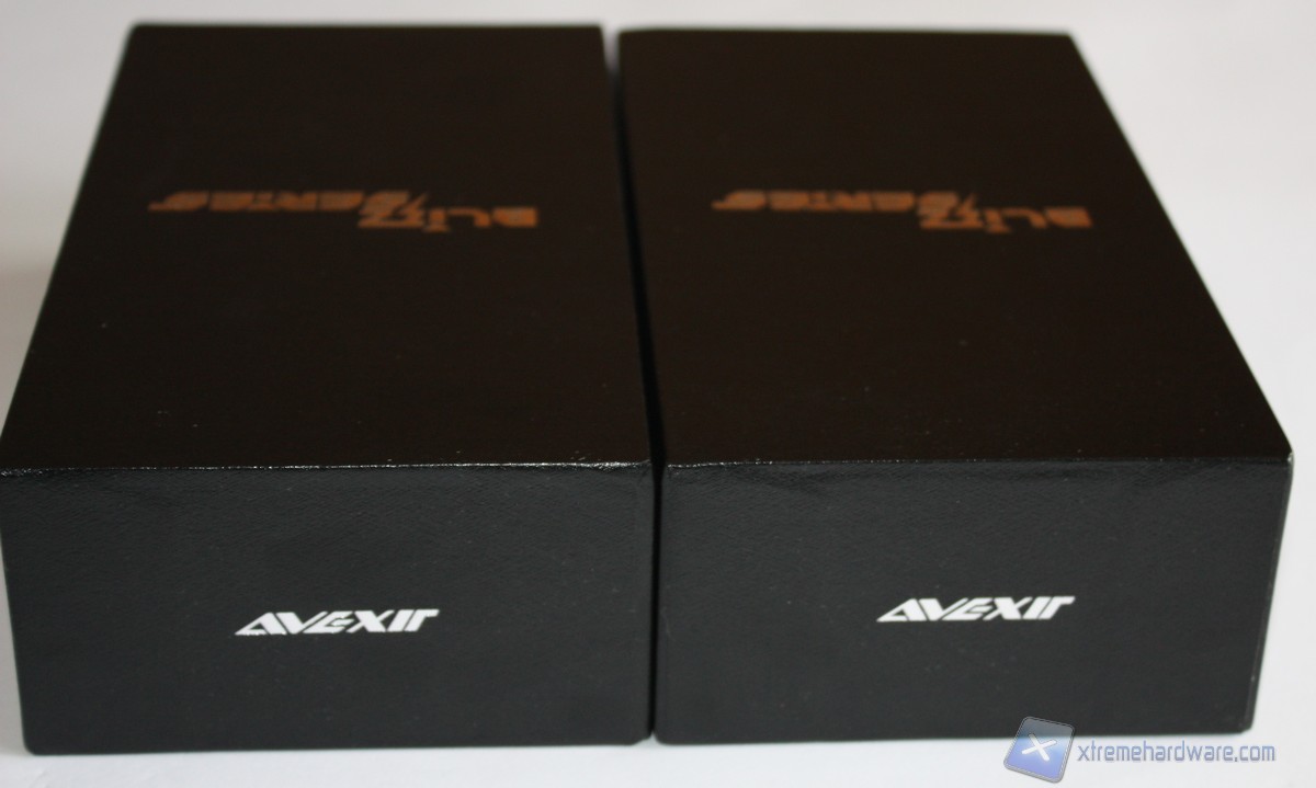 Le Blitz 1.1 ci sono arrivate in due cofanetti di colore nero. Ricordiamo  che le seguenti confezioni sono quelle definitive che verranno commercializzate, ovviamente con moduli della stessa tipologia. La cura per i materiali ed i dettagli confermano appieno sin dalla confezione la filosofia Avexir. Nella parte superiore è presente il modello della serie in colore argento che contrasto in modo ottimo il colore nero della confezione. La confezione è semplice, pulita ed elegante