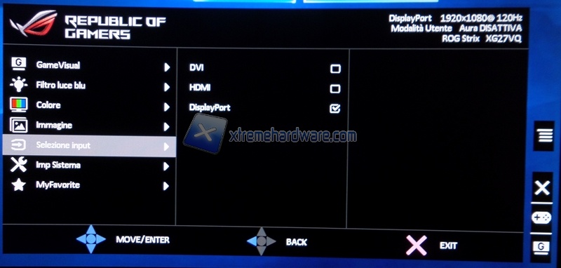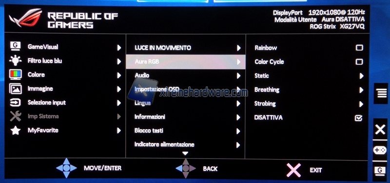 ASUS fornisce sul CD allegato, ma che è possibile scaricare anche direttamente sul sito ufficiale, il software chiamato ASUS DisplayWidget che riporta tutto il menù OSD con la possibilità di impostare una modalità predefinita a seconda dell'applicazione che viene eseguita sul PC, così da non dover ogni volta sceglierla manualmente.