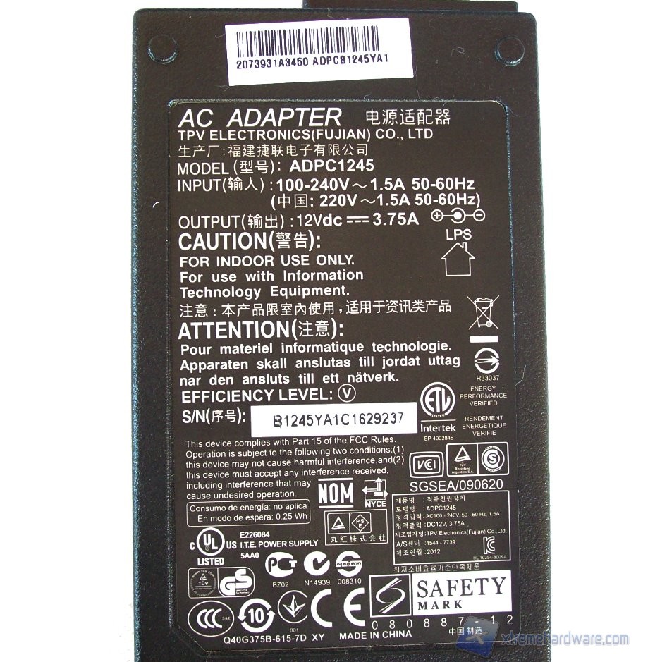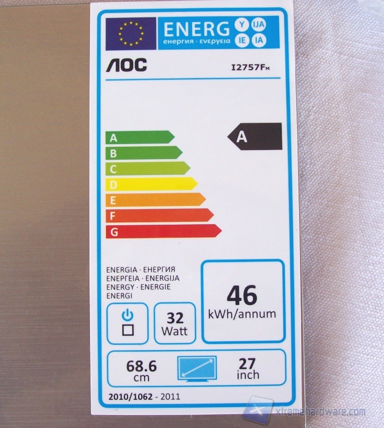 Il bundle risulta davvero completo. All’interno troviamo l’alimentatore esterno con cavo dedicato, lo stand, la base di appoggio, un cavo analogico D-Sub, un cavo HDMI, un cavo HDMI to MHL, un cavo audio jack, un CD contenente i software visti precedentemente con il manuale in italiano e un panno in microfibra per la pulizia del display. Sulla base viene riportata l’etichetta ENERGY STAR indicante A come classe di efficienza energetica.
