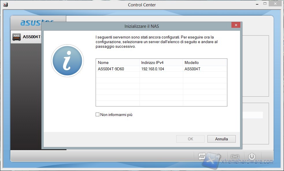 Una volta effettuata questa operazione basilare apriamo il software Asustor Control Center che troviamo all'interno del DVD fornito con il NAS o sulla pagina del produttore.