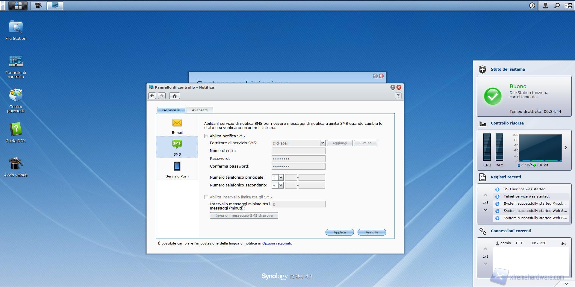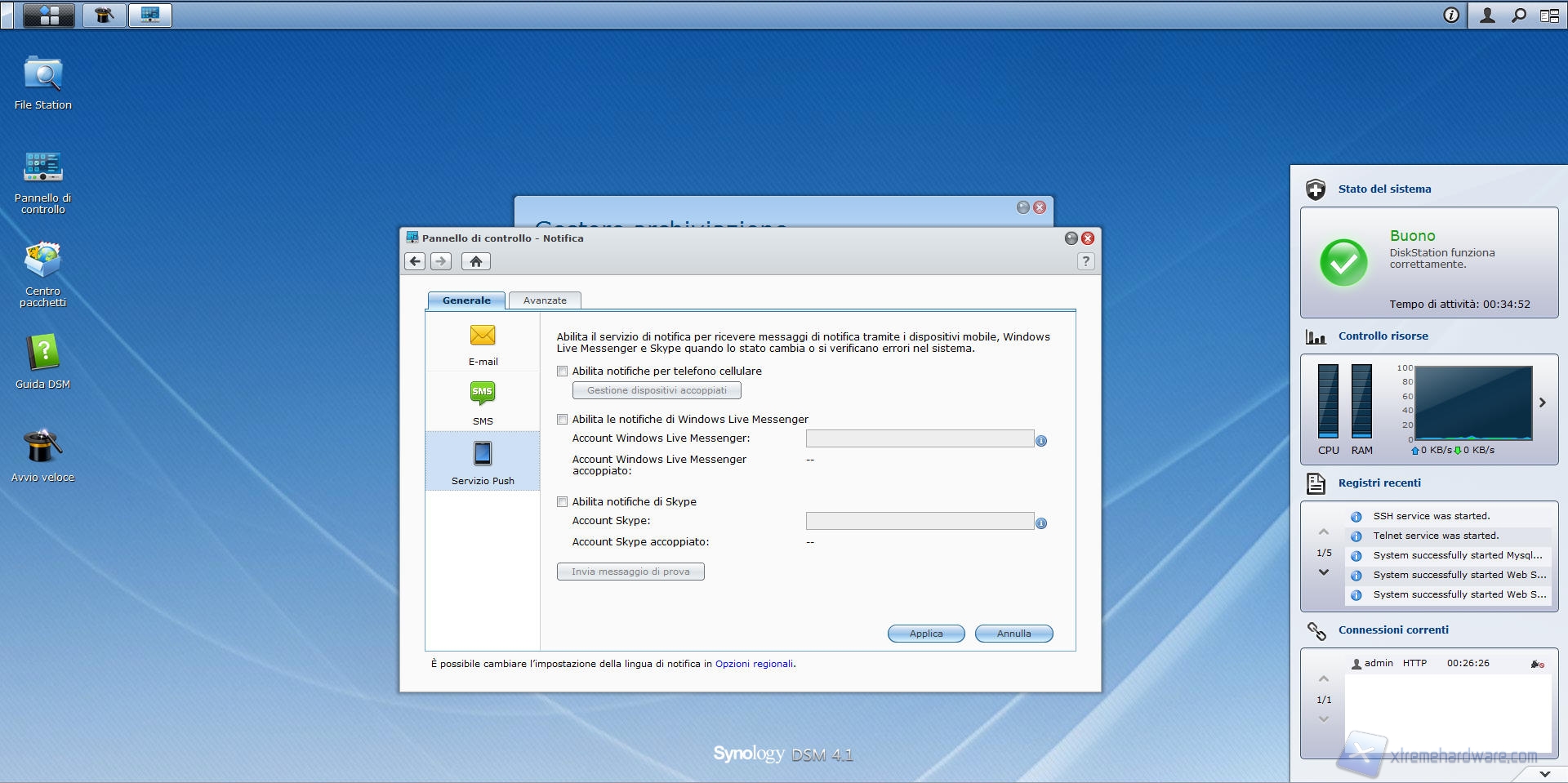 Il menù relativo alle notifiche è sicuramente uno dei più importanti dell'intero sistema, soprattutto se usate il Synology DS412+ in ambito aziendale, ambiente per il quale è stato pensato.