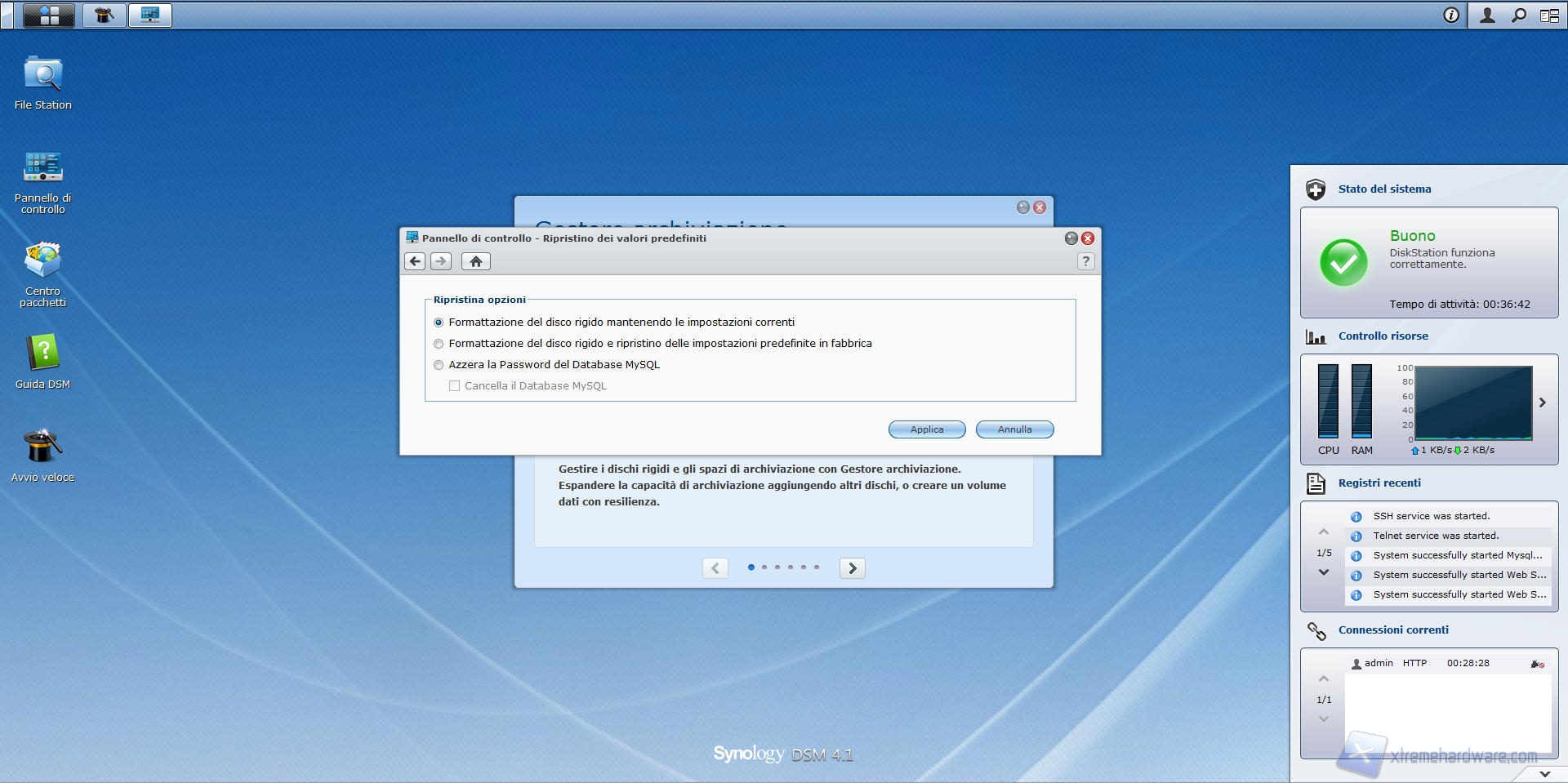 Come in tutti i Network Attached Storage, anche il Synology DS412+ ha la possibilità di esser ripristinato con i valori di fabbrica.