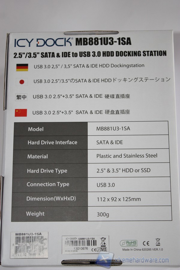 Il retro della confezione riporta inoltre il seriale e il part number, ed una tabella con le specifiche tecniche della docking station.