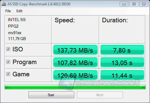 Il test ”copy” di AS SSD Benchmark ci consente di capire le performance del nostro disco nel caso in cui volessimo copiare dei dati compressi tra una partizione e l’altra; in questo caso dobbiamo far notare un netto calo prestazionale rispetto a quanto dichiarato dalla casa produttrice.